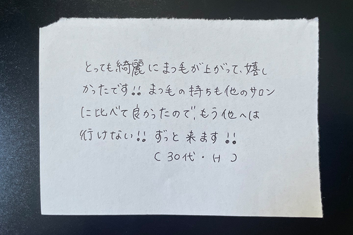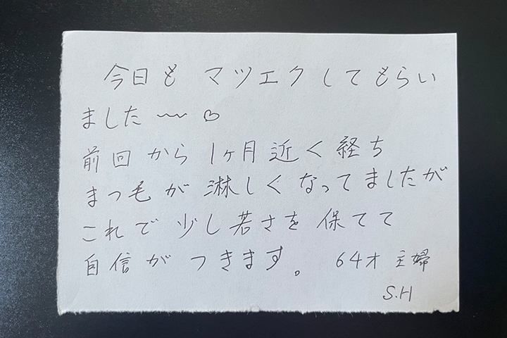当サロンでは、軽やかな付け心地と持続力の高さが魅力のフラットラッシュに特化し、自まつげへの負担を軽減。
